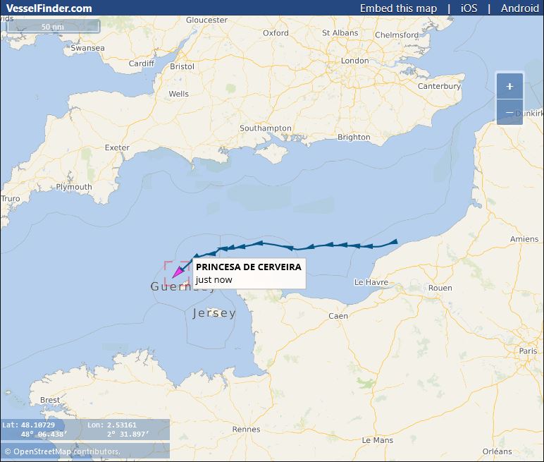 Endlich: Das Wetter ist gut, die Strömung ist günstig, und so verläßt die Princesa de Cerveira gegen 16.30h den Hafen von Dieppe. So schön das Städtchen ist, alle, die Crew natürlich und alle anderen, die auf die eine oder andere Weise dabeiwaren oder sind, freuen sich, dass es nun doch endlich nach Hause geht. Die Princesa soll in ihr Revier kommen, in ihr Habitat, in unsere luso-galizische Heimat.