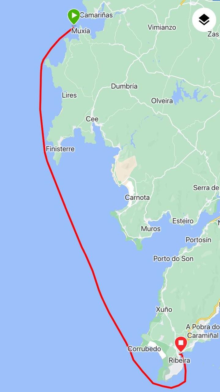 Für mich ist es ein weiterer Höhepunkt dieser Reise. Was für große Segler wie Boris Herrmann die Umrundung von Kap Hoorn ist, für mich ist es die Fahrt die Todesküste entlang am Kap Finisterre vorbei.