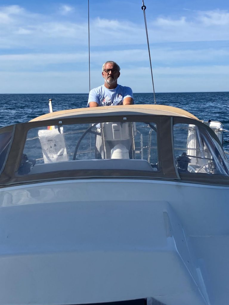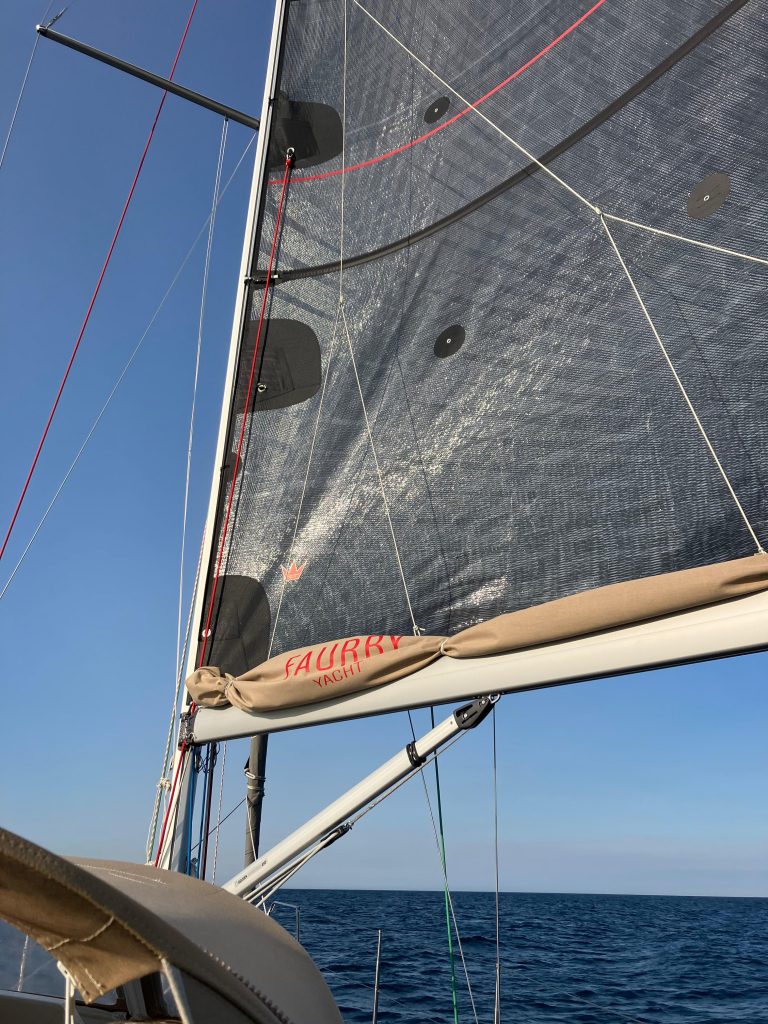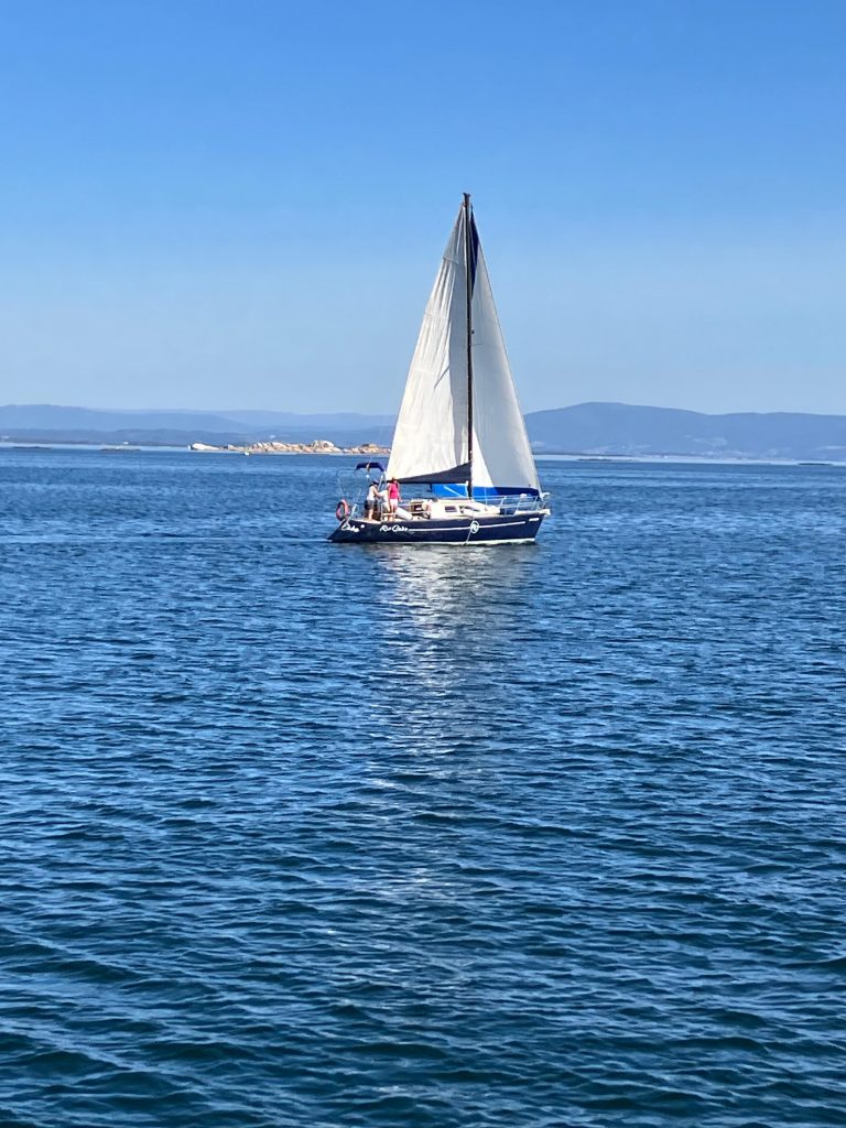 Das Wetter ist wie gestern, wenig Wind zwar, aber herrlicher Sonnenschein. Gab es gestern noch hin und wieder ein paar Wellen südlich von A Corunha, so ist die See heute noch ruhiger, heißt, wir motoren und nehmen das Groß zur Unterstützung dazu. Natürlich könnten wir auch ohne Motorunterstützung segeln. Aber dann kämen wir erst in der Nacht an, und morgen beginnt die neue Arbeitswoche.