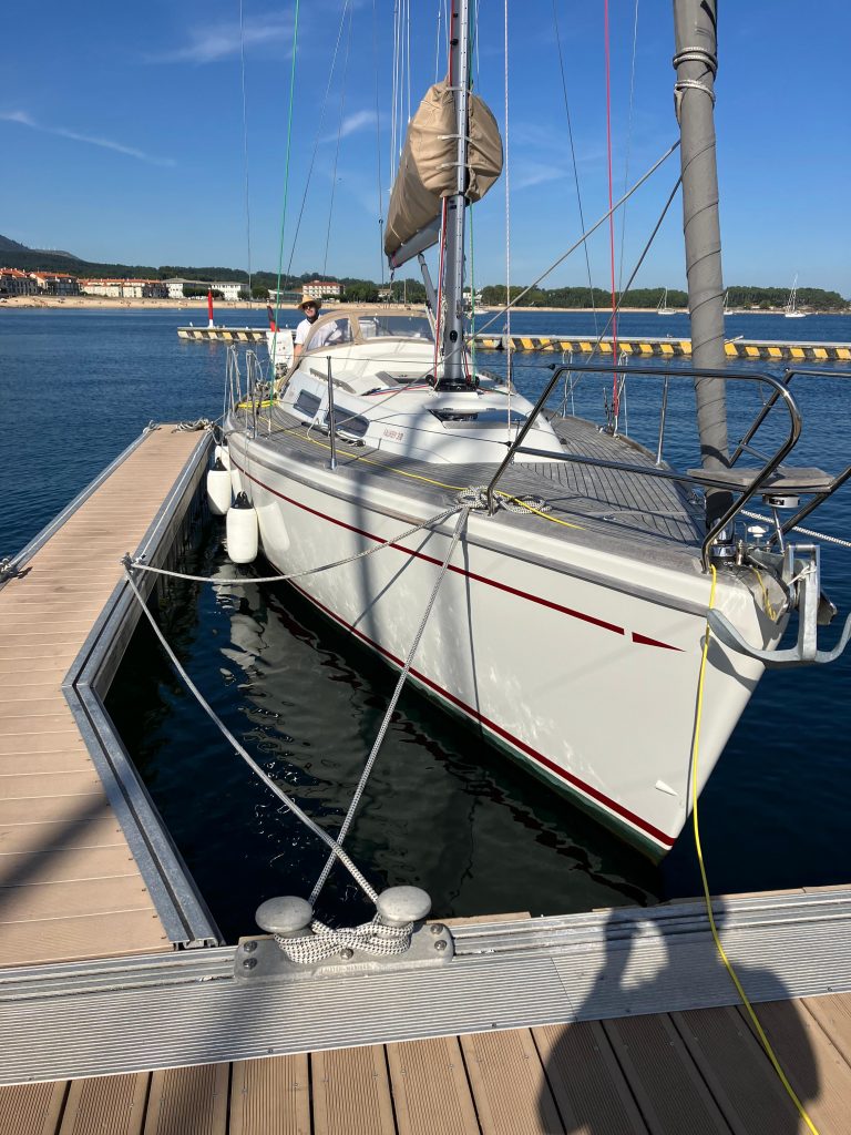 Die Princesa de Cerveira ist eine Faurby 370, ein schlankes und elegantes Schiff, nur 3,30 m breit, aber selbst zu fünft kann man in diesem Boot bequem schlafen. Selbst das Konzert stört die Nachtruhe nicht wesentlich. Und so freuen wir uns auf den zweiten Teil dieser Etappe, der uns heute weiter die Todesküste entlang gen Süden und am Kap Finisterre vorbei führen wird.