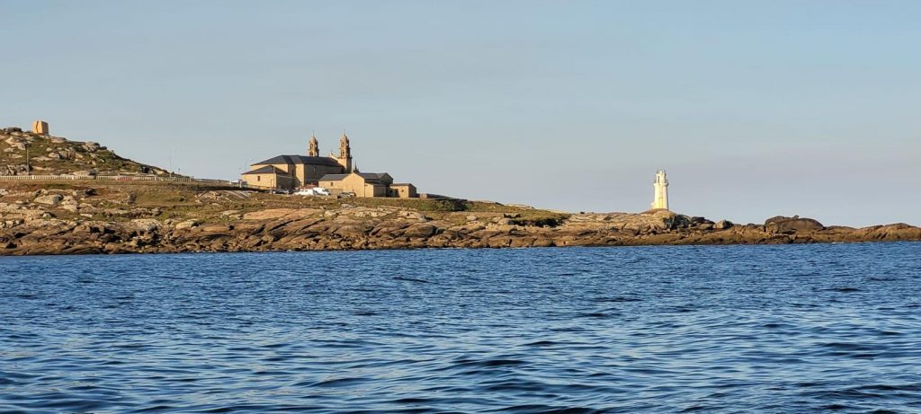 Um 9.35h verlassen wir den Hafen von Muxía. Schon wenig später sehen wir die alte Kirche Virxe da Barca.
