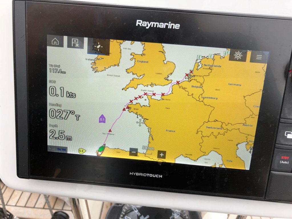 Auf dem Plotter kann man in etwa erkennen, welch große Reise von Scheveningen über Zeebrugge und Dieppe die Crew gemeistert hat, eine großartige Leistung großartiger Menschen, danke Ana, Manuel und Marcel!