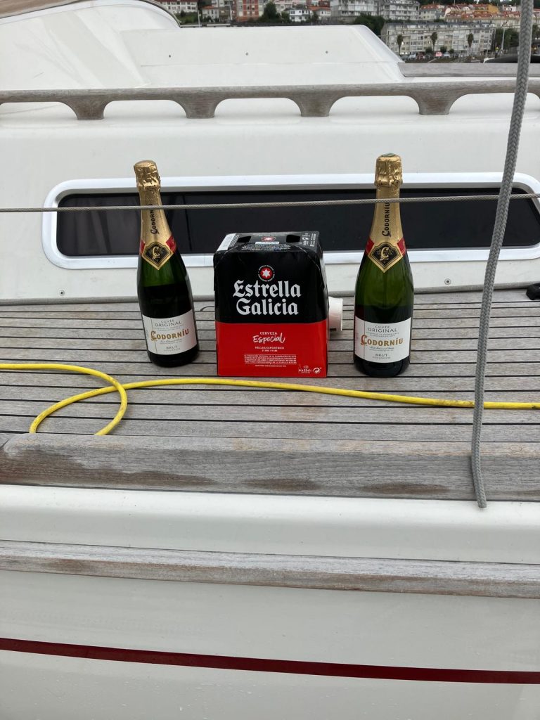Aber jetzt freuen wir uns erstmal, dass Crew und Boot sicher in Galizien gelandet sind. Das kann man auch schon ein bißchen feiern.