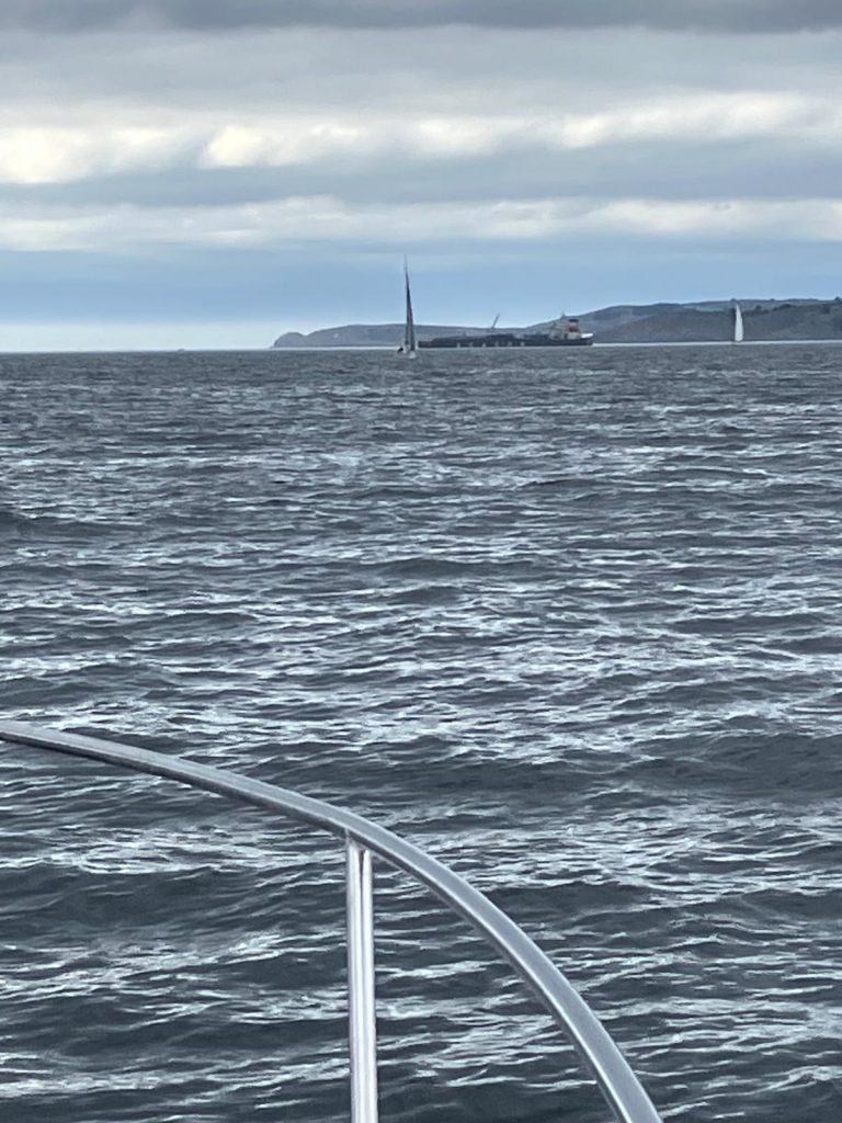 Schon seit dem Vorabend empfangen die Apps wieder die GPS-Signale. Die galizische Küste ist nahe, zu sehen ist sie aber noch lange nicht. Das bleibt auch noch so, als das Dunkel der Nacht allmählich dem Tageslicht weicht. Die Wolken hängen tief, zeitweise regnet es sogar, und so sind die Erhebungen an der Küste bestenfalls schemenhaft zu erkennen.