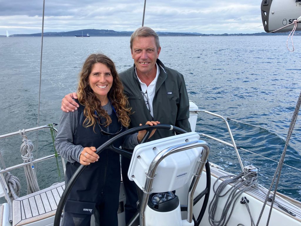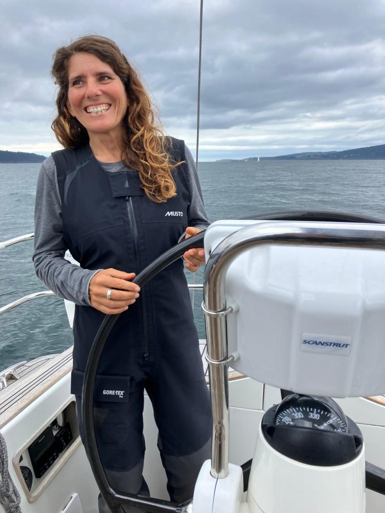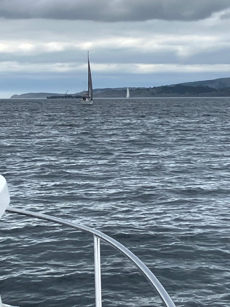 Natürlich beobachtet uns die Crew, sieht, wie wir direkt auf sie zuhalten. Ana ist sich sicher: Das sind Santi und Klaus. Ana holt Fähnchen raus, winkt vor Freude, alle jubeln, bei dem einen oder anderen fließen Tränen der Freude. Was für ein wunderschöner und emotionaler Moment!