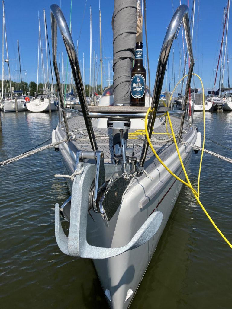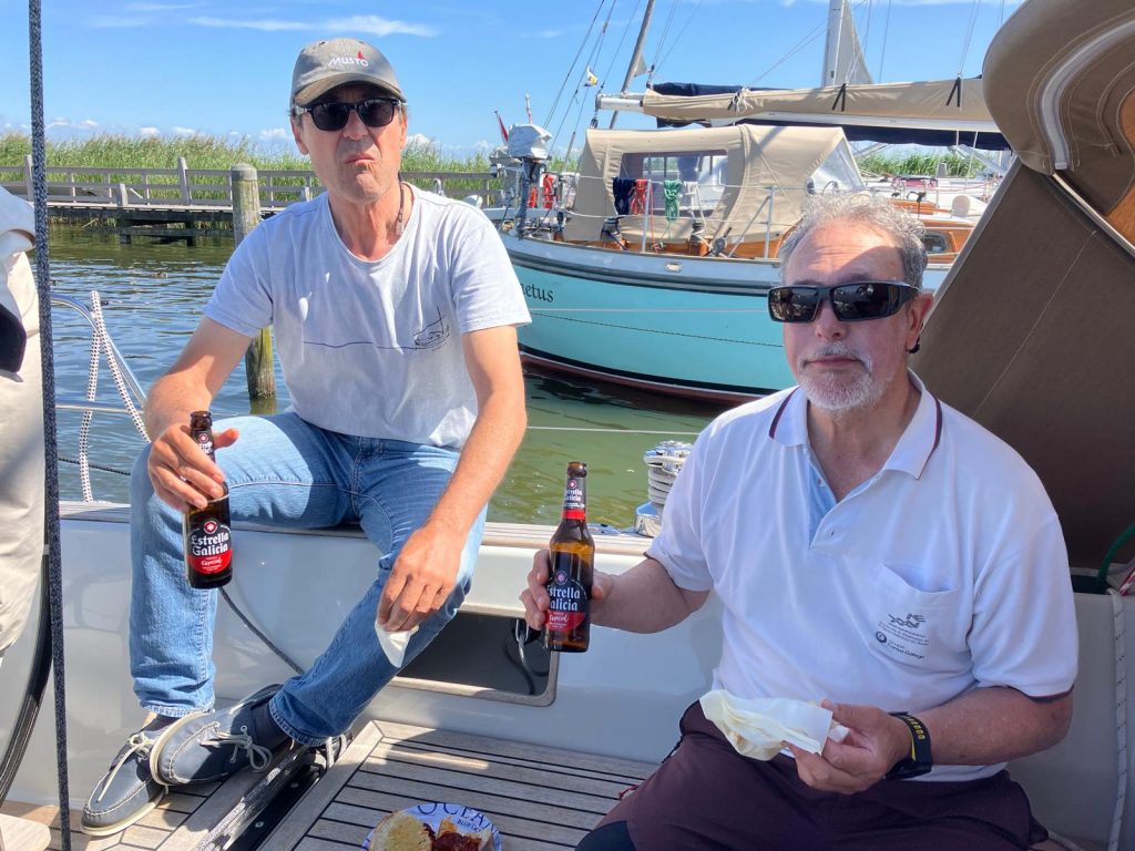 Wir tanken noch schnell auf, bevor wir unseren Liegeplatz ansteuern. Wir machen fest und genießen unser Anlegerbier, Estrella Galicia für meine beiden Freunde, Gaffel Kölsch für mich. So bleibt jeder seiner Heimat treu.