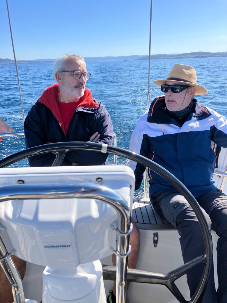Für den Törn hat sich eine bunte Mischung aus Crew 1 und Crew 2 ergeben. Unter dem Kommando von Capitán Pachicho sind Pablo und Santi aus Crew 1, Manuel aus Crew 2 und ich dabei. Heute wollen wir nach Muxía, morgen geht es dann weiter nach Ribeira.