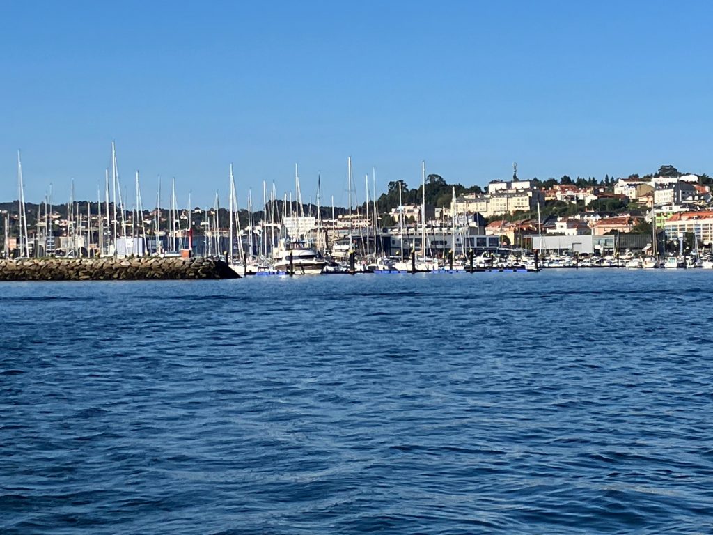 Die Ría de Ares y Betanzos ist an die 5 Seemeilen lang. Wir brauchen also eine Weile, bis wir auf den offenen Atlantik stoßen. Viel Wind gibt es nicht, und so tuckern wir gemütlich unter Motor. Vom Wind abgesehen genießen wir herrliches Spätsommerwetter. Die Sonne wird uns den ganzen Tag begleiten.