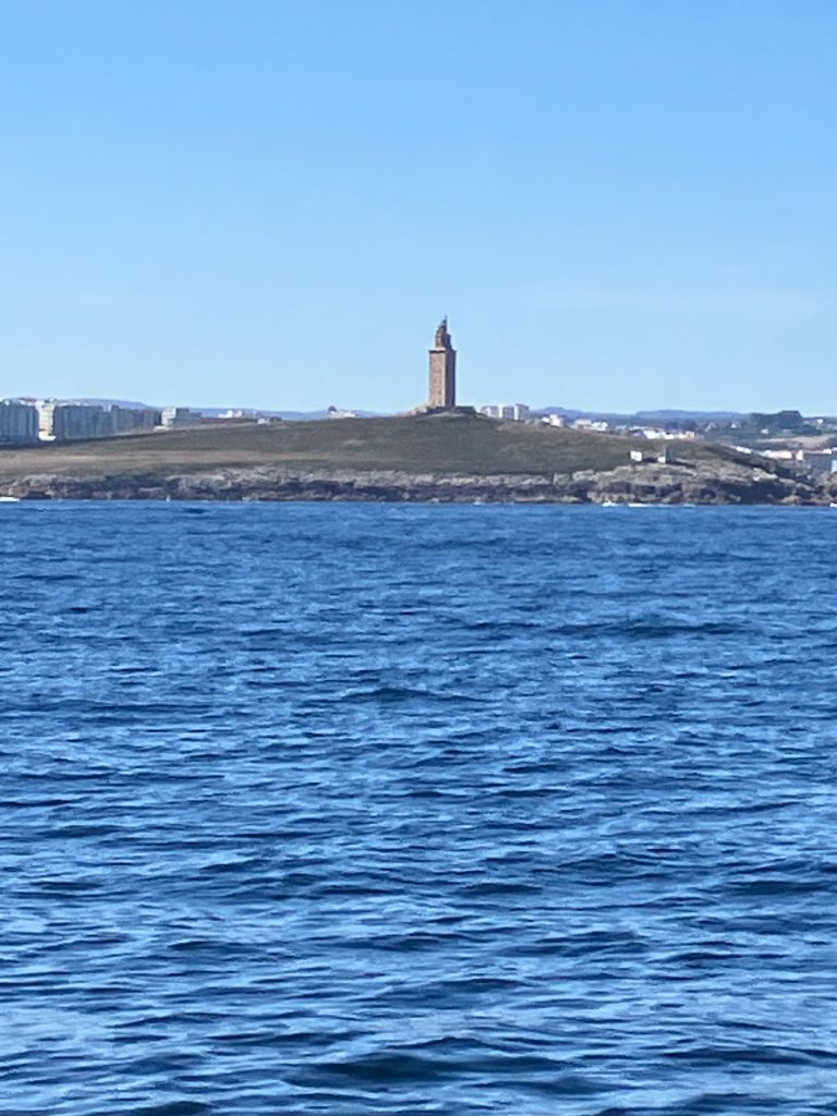 Kaum sind wir aus der Ría raus, sehen wir in der Ferne A Corunha, diese wunderschöne nordwestgalizische Metropole, 250.000 Einwohner groß, Anlaufhafen vieler Kreuzfahrtschiffe.