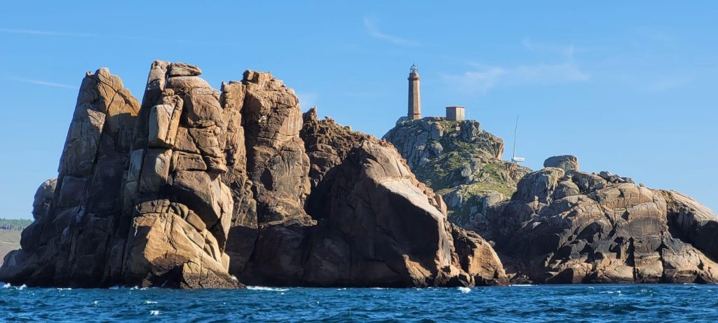 Wir sind an der Costa da Morte, der Todesküste. Warum sie so heißt? Hier hat es schon viele Schiffe erwischt. Denn nicht nur an der Küste, auch vor der Küste liegen viele Felsen und Klippen rum. Capitán Pachicho kennt sie alle und führt das Boot elegant auf dem kürzesten Weg zum Ziel: