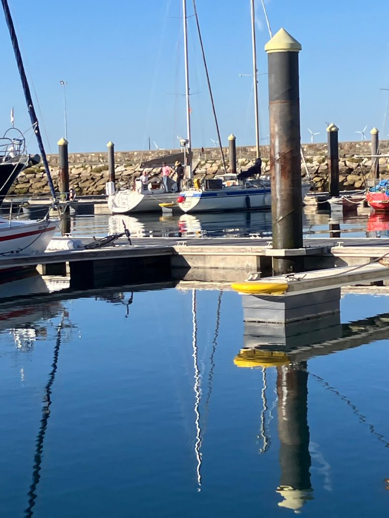Nach auf die Minute genau 8 Stunden und 52,5 Seemeilen machen wir im Hafen von Muxía fest.